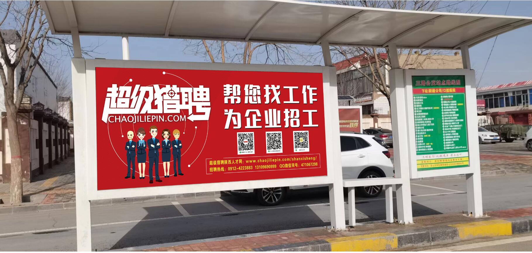 速招猫人才网陕西地区合作伙伴投放公交车站牌广告